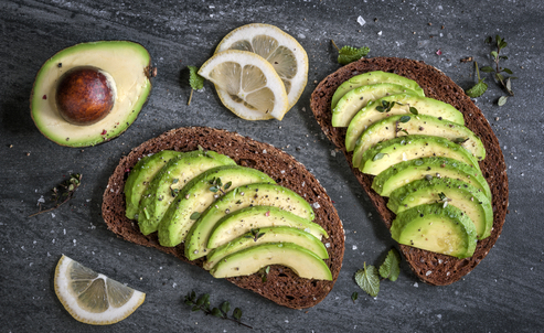 - Try mashed avocado mixed with lemon juice and spread it on toast or in a sandwich, instead of butter. At only 80 calories, an avocado is rich in heart-healthy monounsaturated fat and it contains even more potassium than a banana. This delicious, creamy fruit can lower your cholesterol and contains a good helping of vitamins and minerals, whilst being low in carbs and high in fibre.