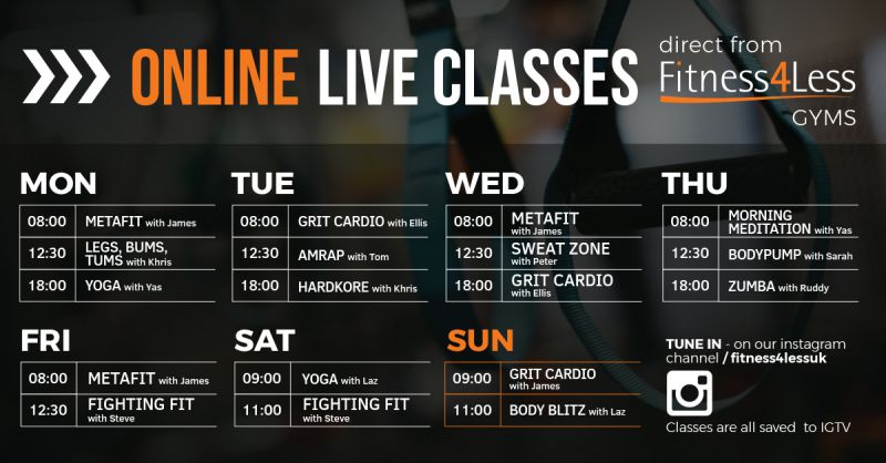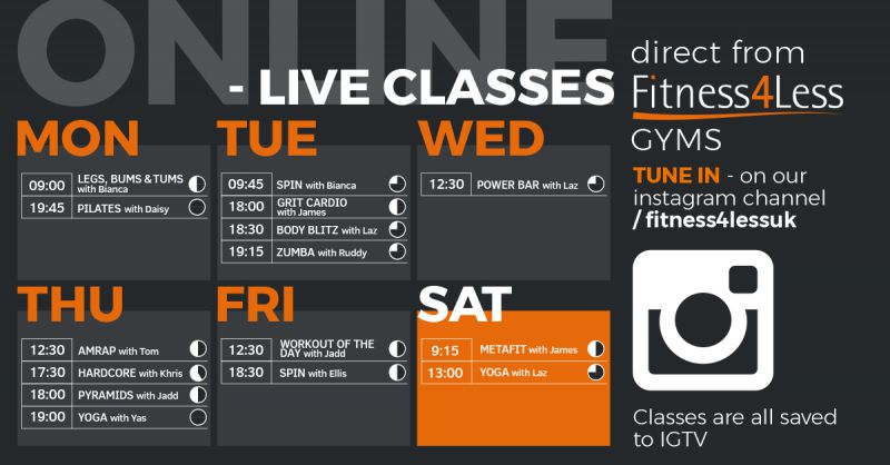 The current timetable and range of online classes are shown in the above timetables - these are recorded live on Instagram and then stored for you to watch back on IGTV. If you are new to social media there is a full and detailed guide of how to access classes on Instagram