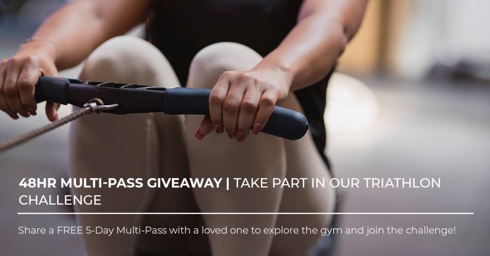 We are back with another 48hr Multi-pass membership giveaway and this time around you and a loved one can take part in our Triathlon Gym Challenge... and WIN fun prizes! Share a FREE 5-Day Multi Pass with a loved one and they get 5 one-day passes to use within 30 days. Discover how to get involved: