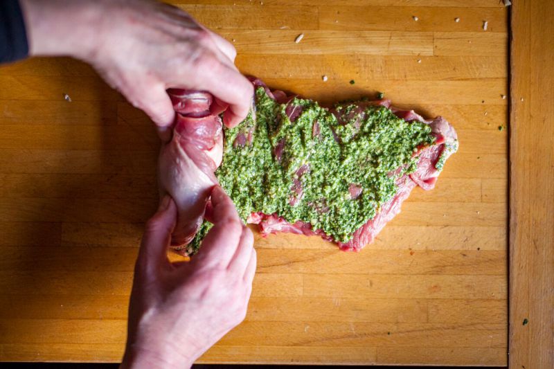 - Roll the piece of meat back up and tie it with string. Making sure you use food grade string!