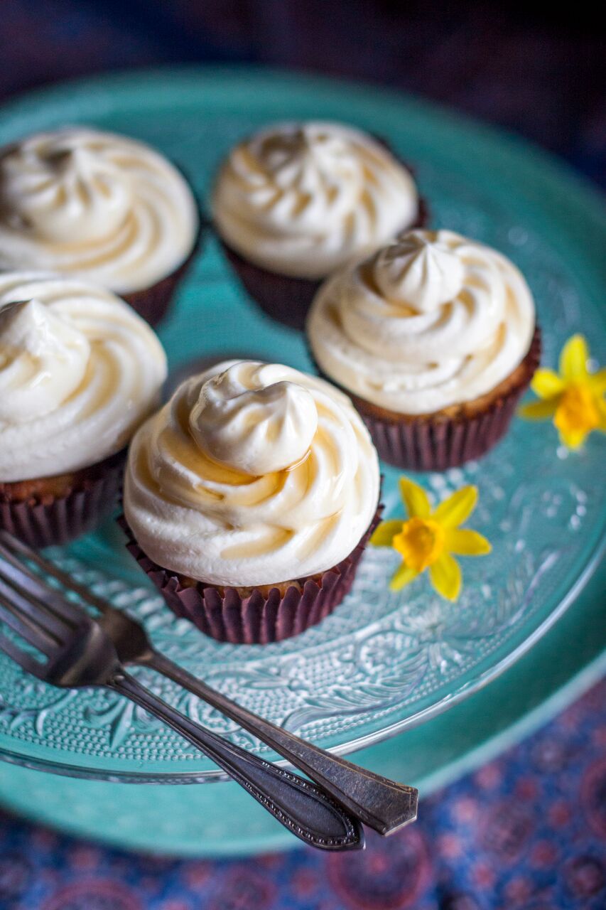 Beat together the cream cheese and maple syrup. Pipe or spread the icing on to the cakes. Drizzle with a little extra maple syrup.