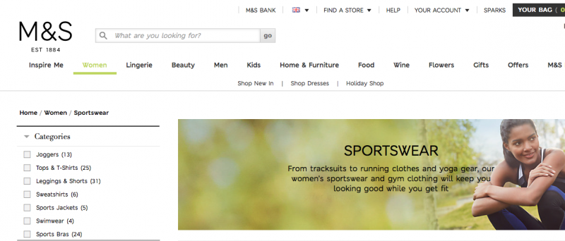 M & S Marks and Spencer have got some great workout clothes on offer, with high elastane content (30% in their leggings!), some snazzy patterns and a ‘media pocket’ in some designs – what’s not too like! Legging prices are around £25.