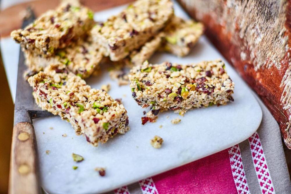 This nutritious granola bar is a healthy pre or post work out snack. It's very simple to make with little or no cooking skills required. If you have a family, we suggest it might be a great recipe to put together with your kids and offer them as an after school snack. This recipe makes 12 bars and can be stirred together in less than 15 minutes, ready to eat after about 2 hours of chilling in the fridge.