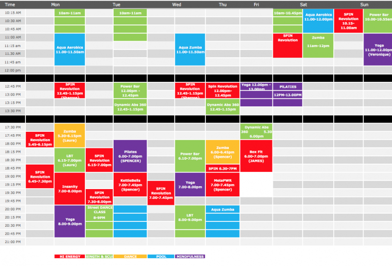 As you can see, the timetable below is a work in progress but the final one will be wide-ranging; involving classes on the gym floor, in our functional training room, in the pool and in our large air conditioned studio.